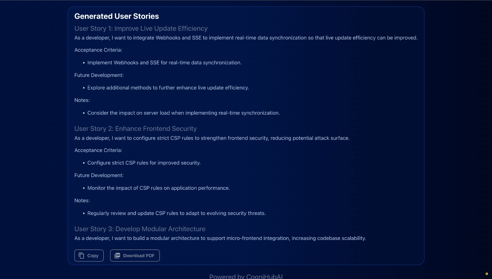 From user stories to resumes, CogniHubAI helps teams save time and boost productivity.
